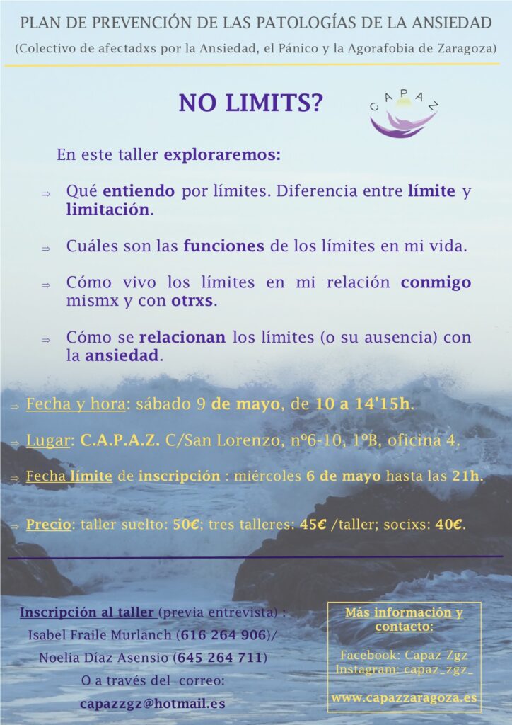 – Los miércoles de 18h. a 20h. es nuestro horario de atención al público. Puedes encontrarnos llamando al 976 259 807 o, si lo haces fuera de este horario, escribiéndonos al correo capazzgz@hotmail.es